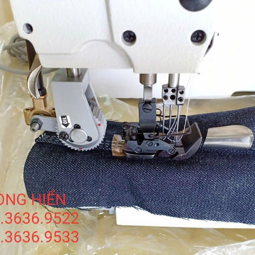 Máy cuốn sườn 3 kim liền trục, hàng Jean, cự ly 1/8, có lô cuốn sau (trợ lực xa).